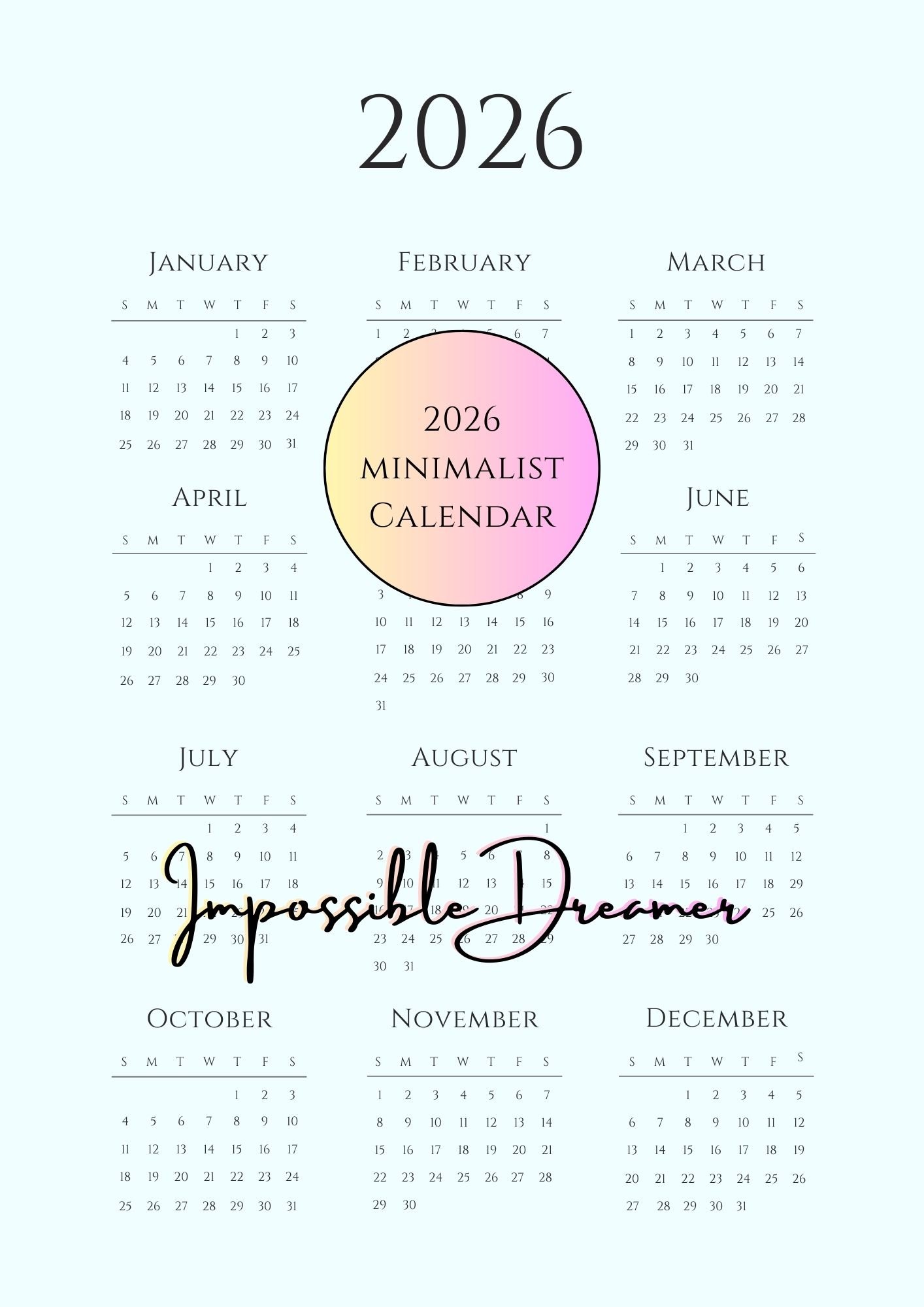 Enjoy this 2026 blue minimalist calendar — all 12 months in a PNG format that you can print off or use on your phone or tablet.