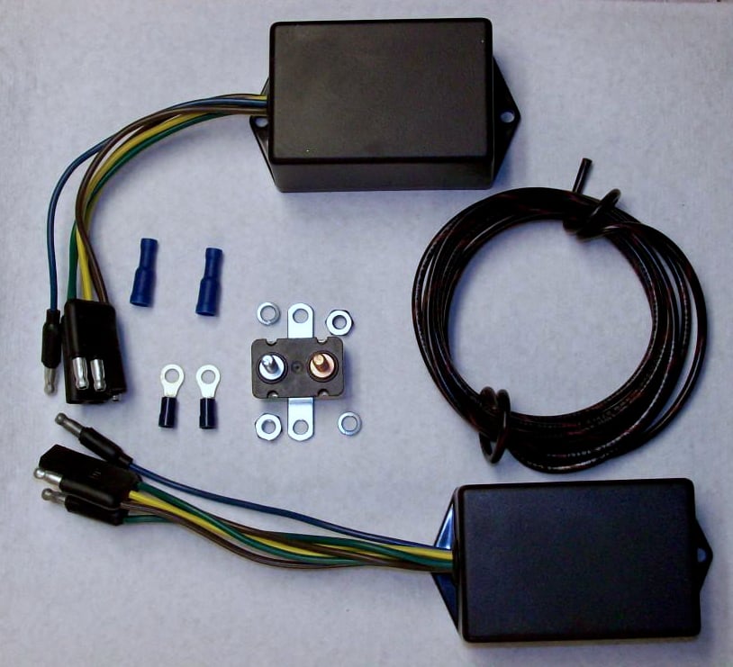 Included in kit: 2 weatherproof controllers, one 40A auto-reset circuit breaker, power wire, crimp-on connectors and easy to follow instructions.