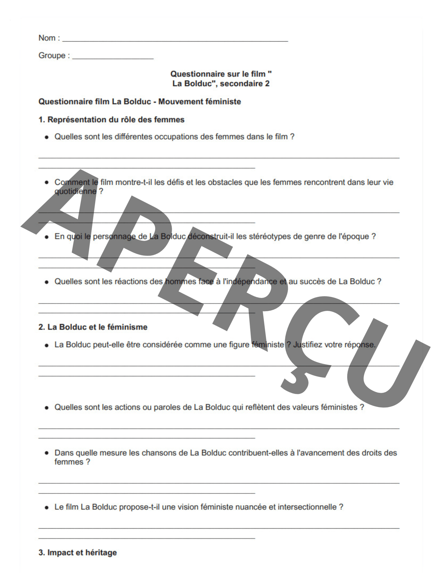 Intention d'écoute pour le film La Bolduc, en lien avec le concept droits et responsabilités, pour les secondaires 2.