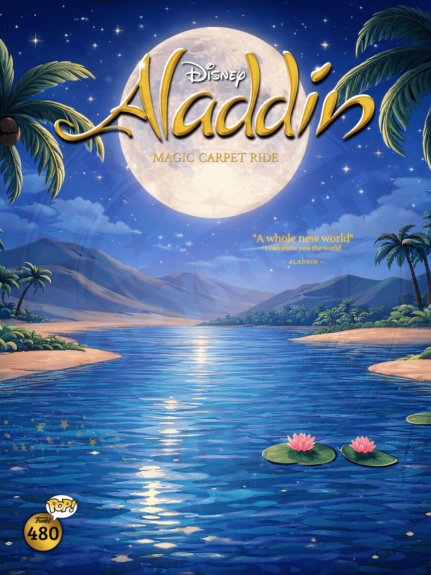 Aladdin Funko Pop Poster 30x40 cm – Magic Carpet Ride #480 – Compatible Display Background – Disney Wall Art Digital Download (PDF)