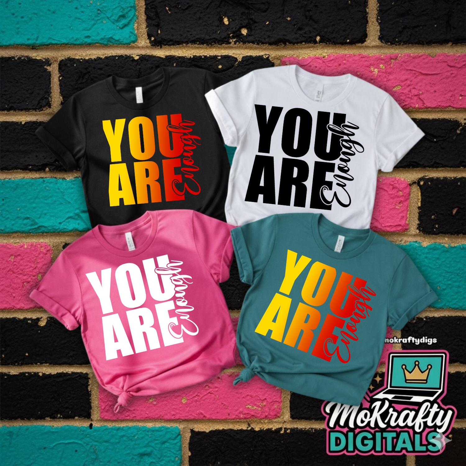 Bring motivation and mindfulness to your craft projects with the You Are Enough PNG Bundle by MoKrafty Digitals. This set empowers crafters to create bold and beautiful merch that speaks life into others. Use it for apparel, drinkware, wall art, or gifts that inspire confidence and self-love!