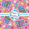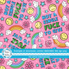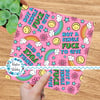 Not a Single Fuck to Give sweary rainbows, flowers and happy faces on pink.