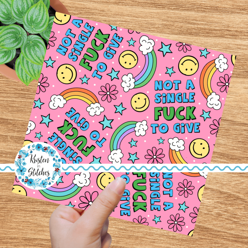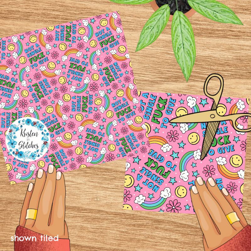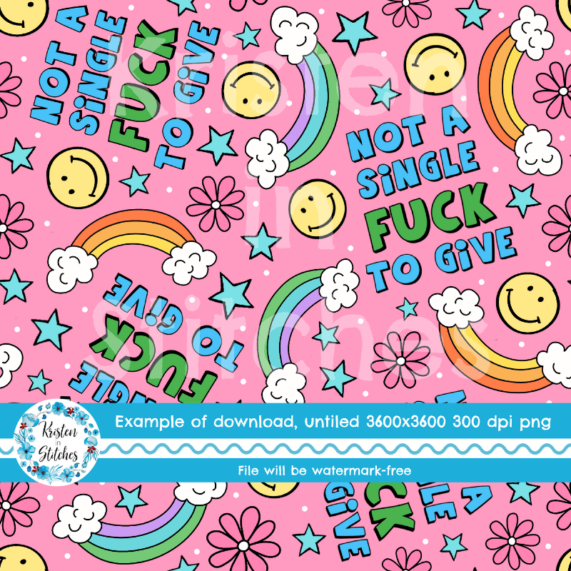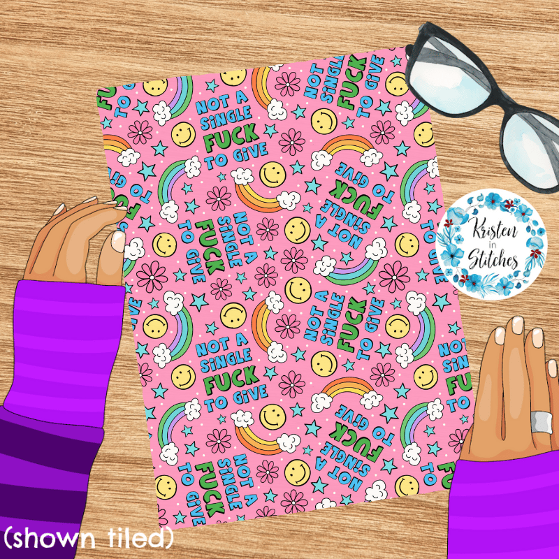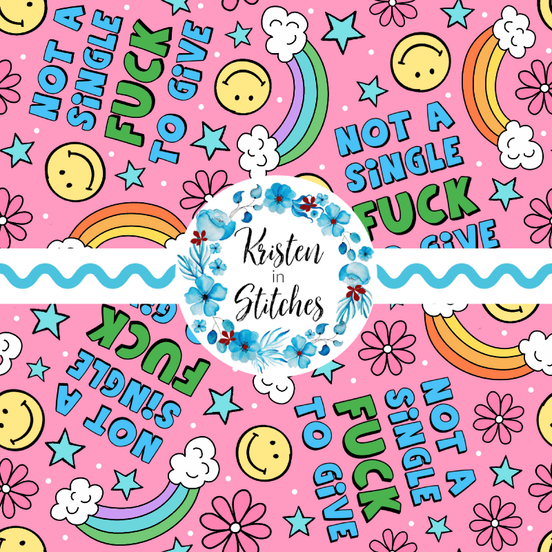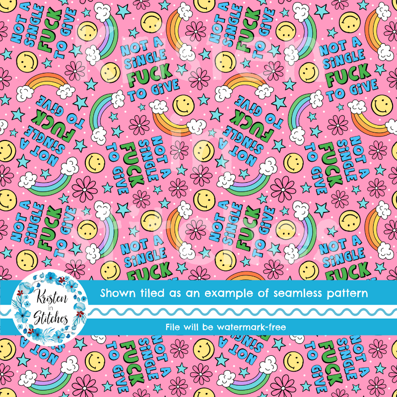 Not a Single Fuck to Give Swear Word Seamless Pattern, Pretty Profanities, Rainbows and Smiles, Pink