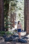 Lace is knit flat, then work is joined to knit in the round to underarm. It is then separated and worked flat for the top portion.
