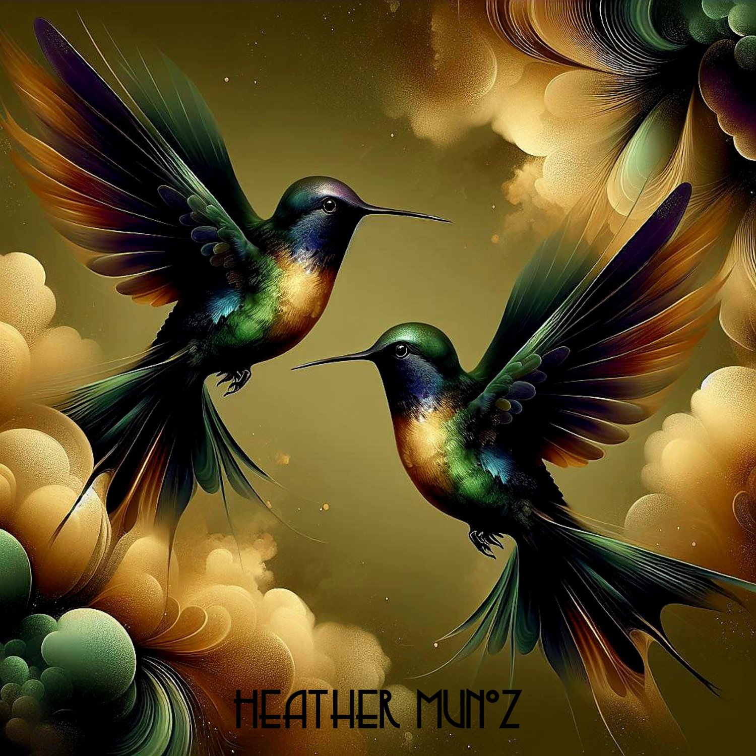 Beautiful Vintage Hummingbirds in green black and gold. Digital download only.