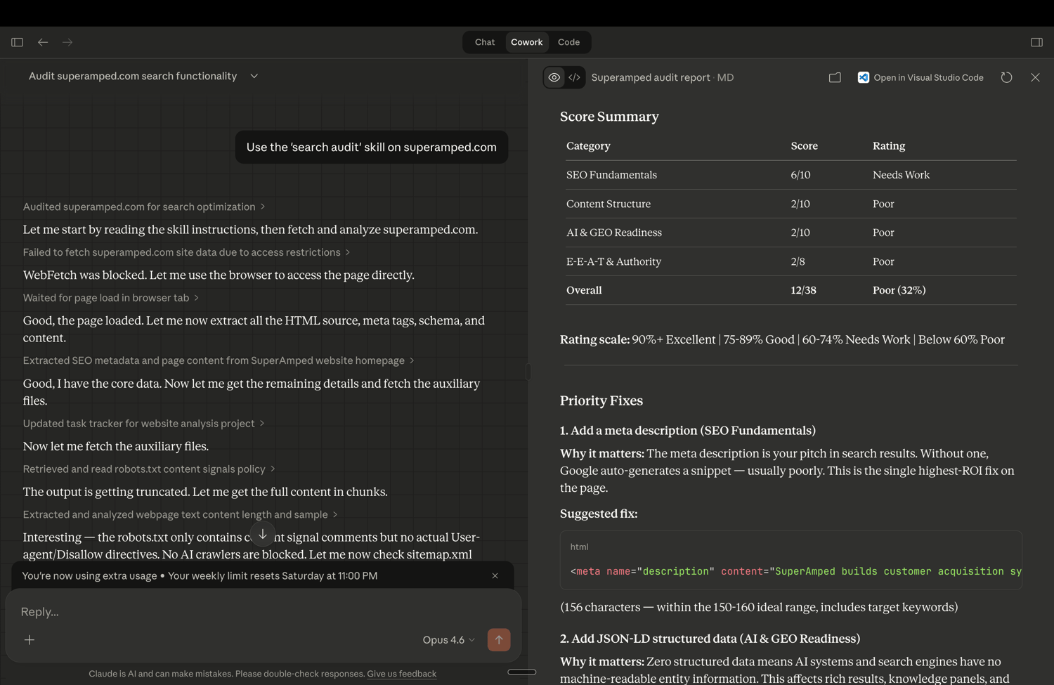Simply paste any URL in your AI tool of choice and get a prioritized audit report in under 5 minutes with the exact fixes to make.