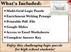 Give you kids a fun activity for Back to School or year round with this high school logic puzzle or brain teaser! Your kids will love this multi-grid logic puzzle about students and schools. Product also contains an enrichment writing prompt, printable pdf. file, Google worksheets, and an answer key.