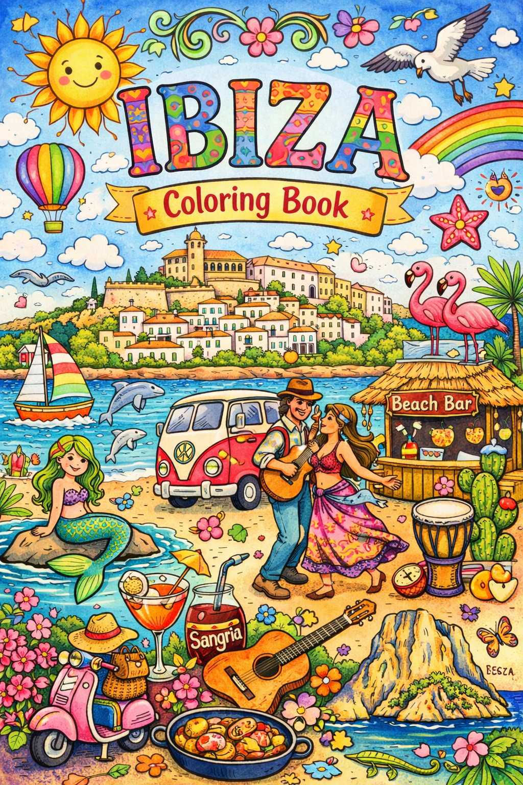Ibiza, coloring ebook, 72 designs, digital printable product, instantly download