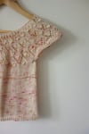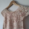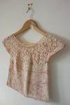 A cute cropped tee with a delicate lace yoke. The zigzag lace design is interspersed with heart shaped double nupps, giving this crop its name.
