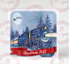 Christmas train with blank red ribbon, square, rectangle and circle variation