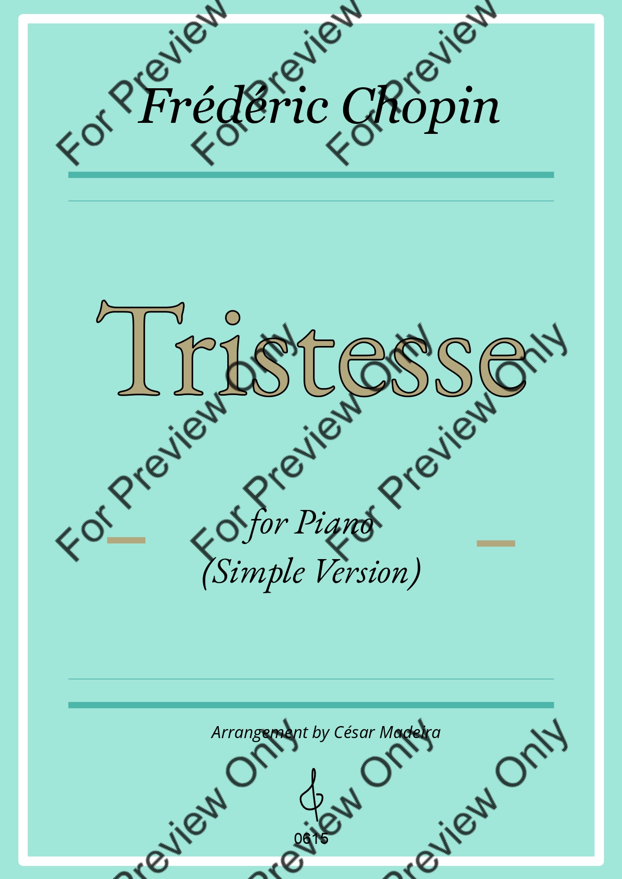 Tristesse, Op.10 No.3 by Frederic Chopin. Arrangement for Easy Piano. With Full Score. Have fun!