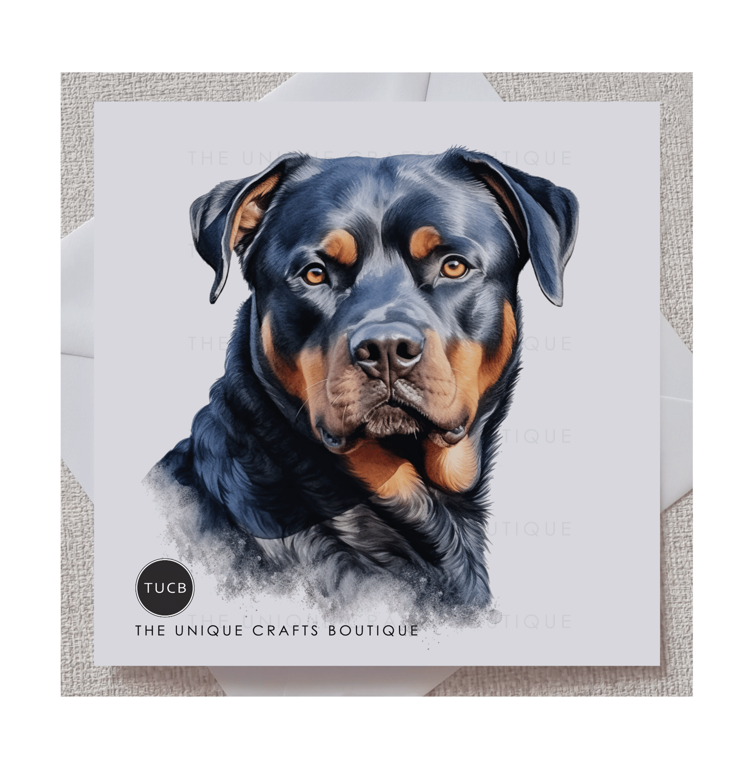 Printed with an adorable Rottweiler design on the front and a blank greeting inside, this card can be used for any occasion.