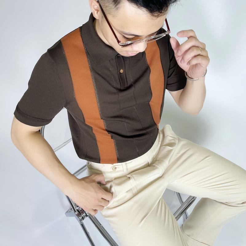 1. Product Name: DATAMAN Short-Sleeve Knitted Polo Shirt for Men, Striped on Both Sides, Made with Non-Pilling Thin Knit Fabric, Korean Style Design - POLODT22-05