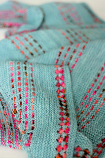 It uses variegated yarn broken up by slipped stitches and ends with a few rows of daisy stitches. Pick your favorite variegated sock yarn, put it with a pretty main color and have some fun!