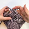 US 15 (10mm) 16”/ 40cm circular and double pointed needles or needle size necessary to obtain gauge; US 11 (8mm) 16”/40cm circular needles, or 2mm smaller than gauge needle; stitch marker; extra large pompom maker (optional); tapestry needle.