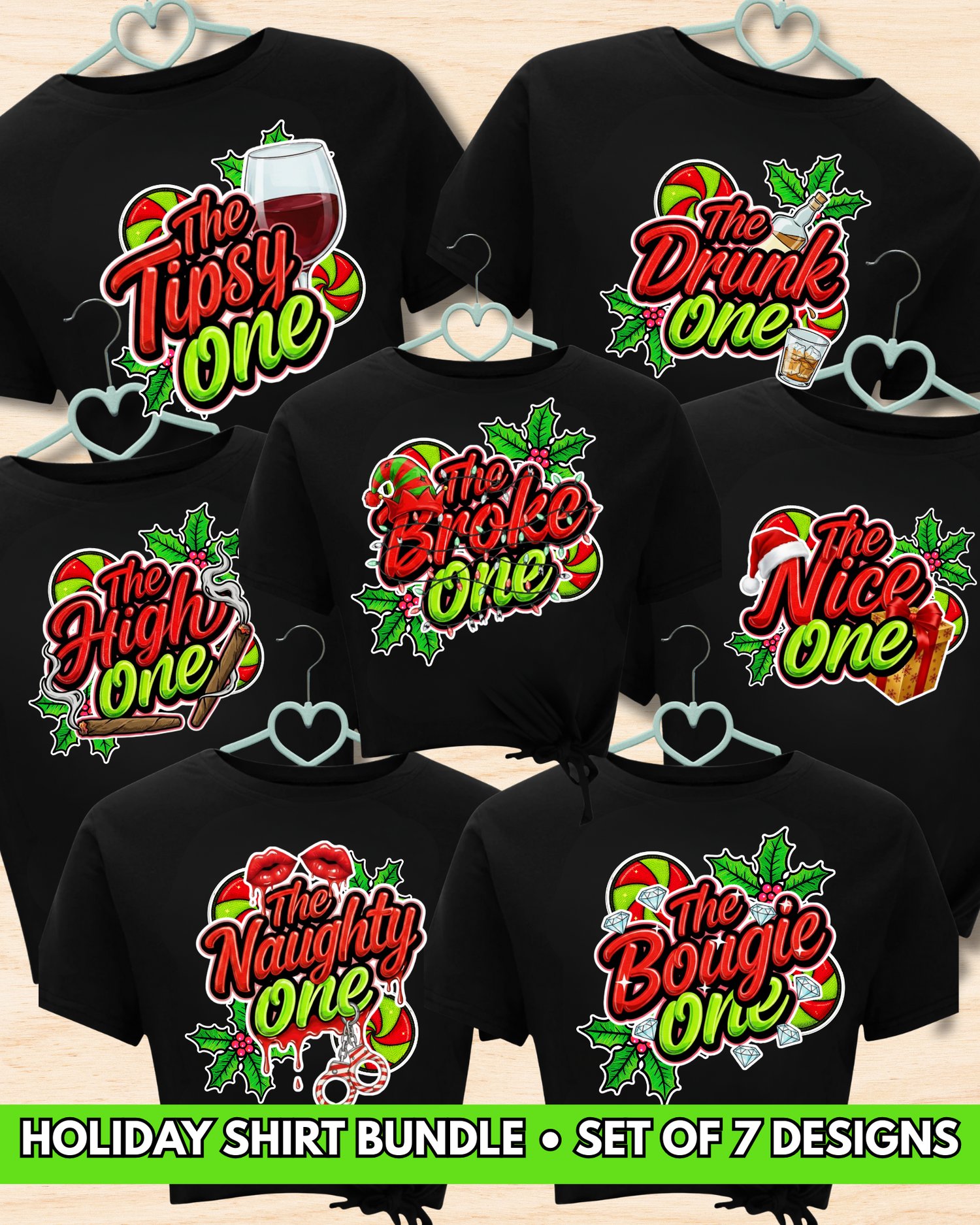 This digital download features 7 hilarious holiday personalities (including The Broke One, The Bougie One, and The Drunk One). These high-quality PNGs are designed specifically to help you create matching merchandise sets.
