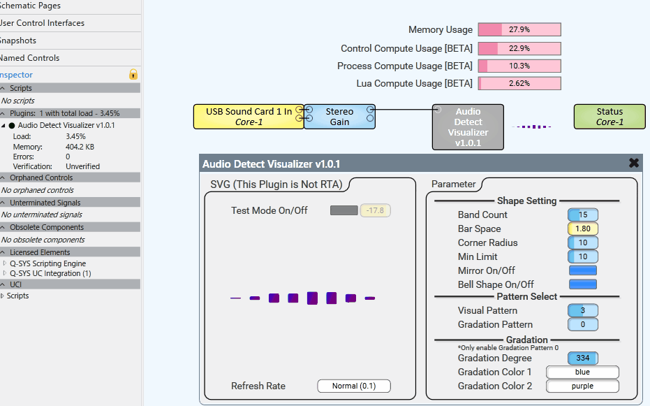 Q-SYS plugin Audio Detect Visualizer with EzSVG