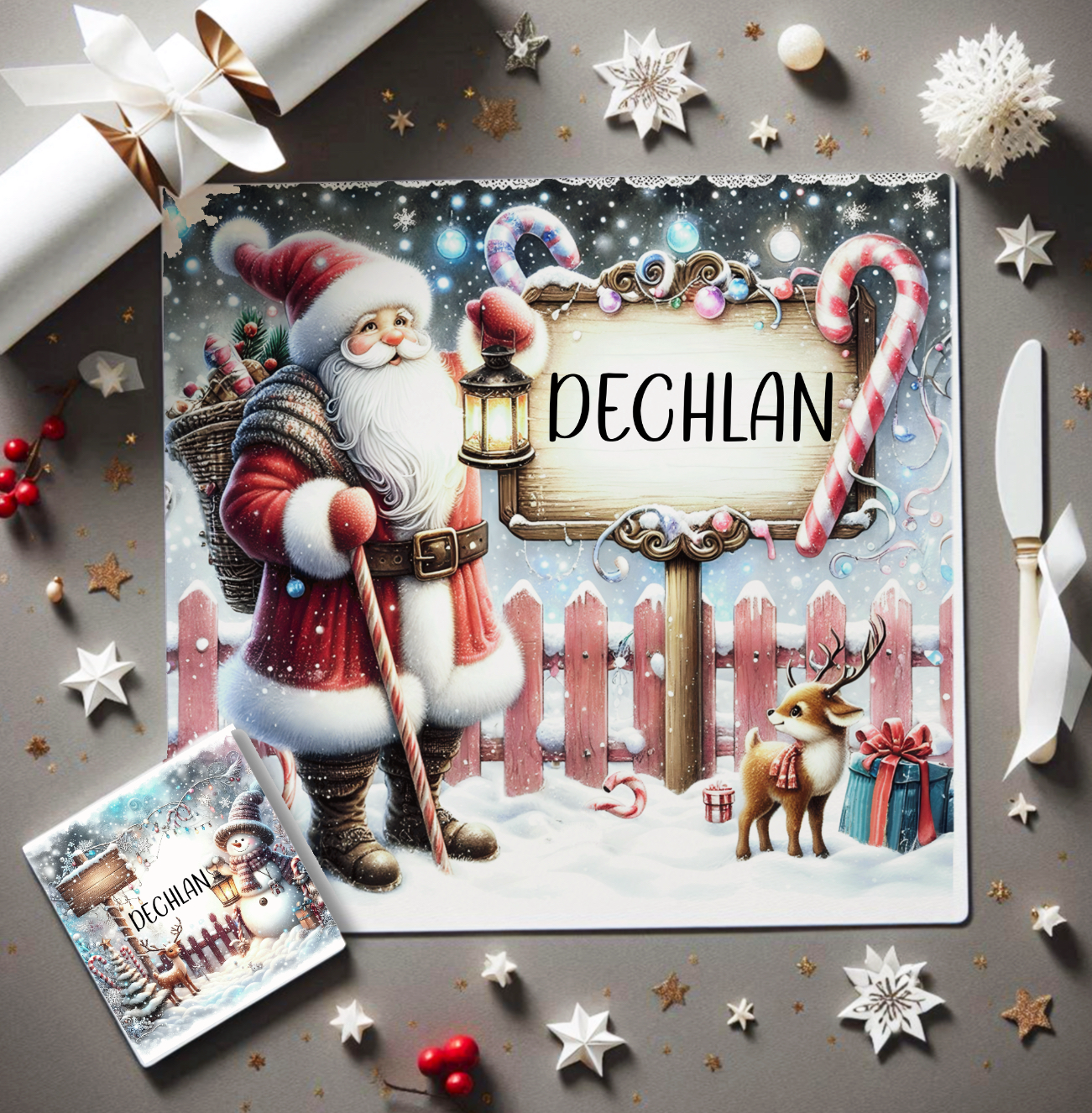 Christmas card/Christmas Eve Box/Placemat design templates. 2 designs with space for your text. Santa design, snowman design. PNG. Sublimation, print.