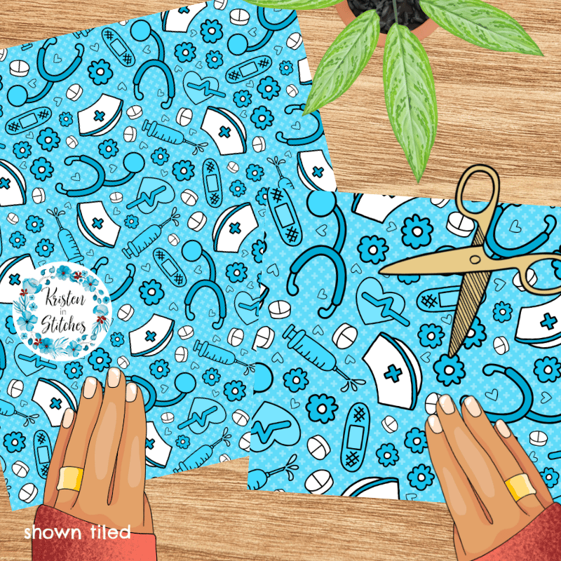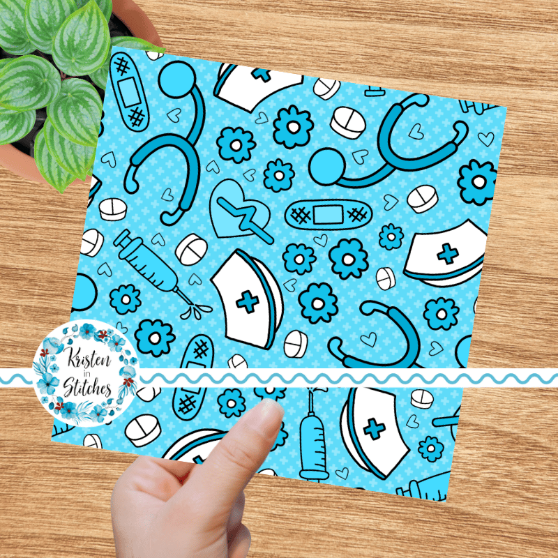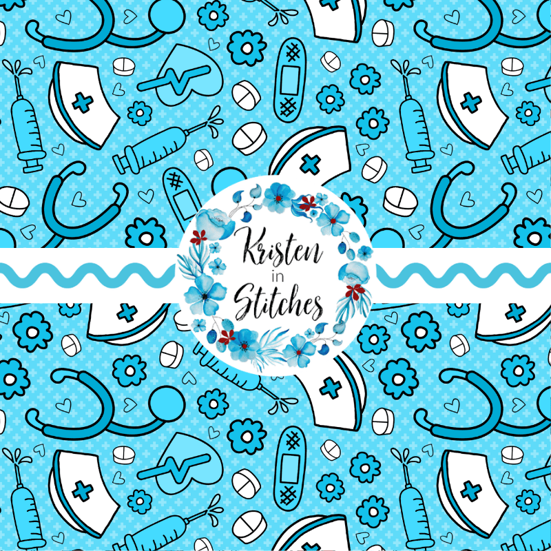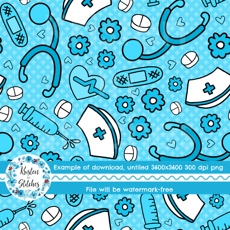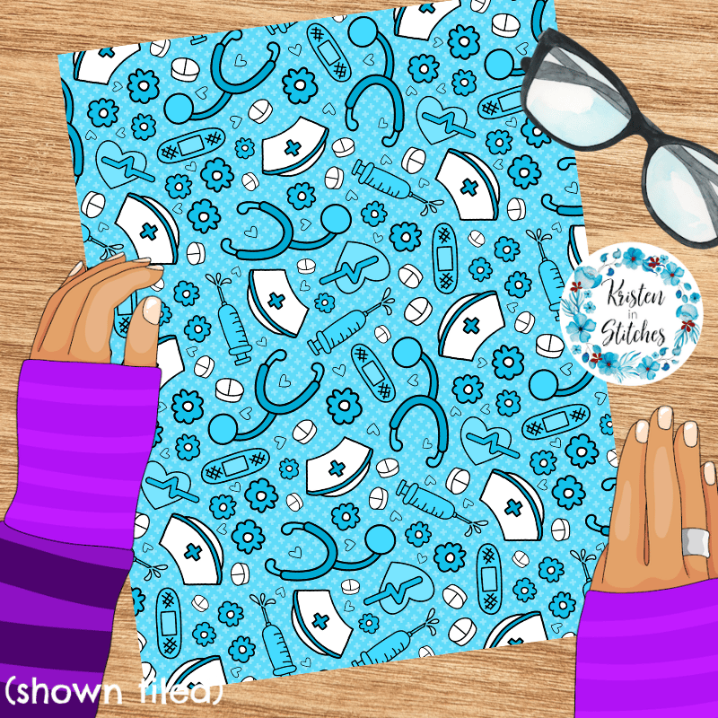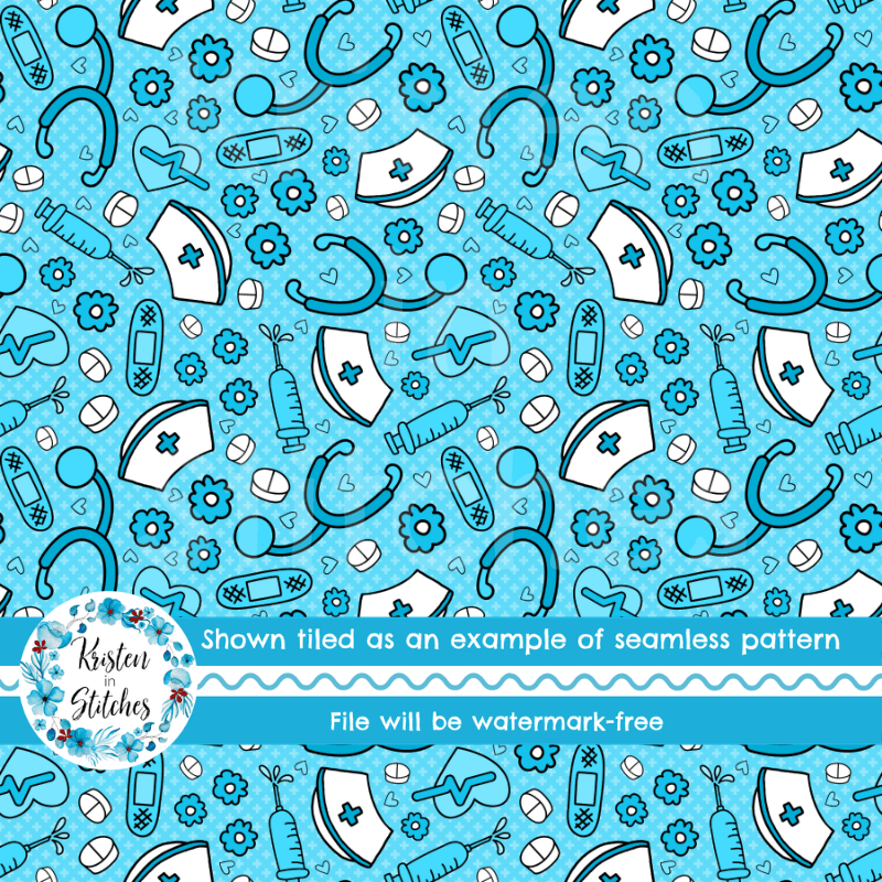 Love a Nurse Seamless Pattern, Medical Nursing Supplies, Blue