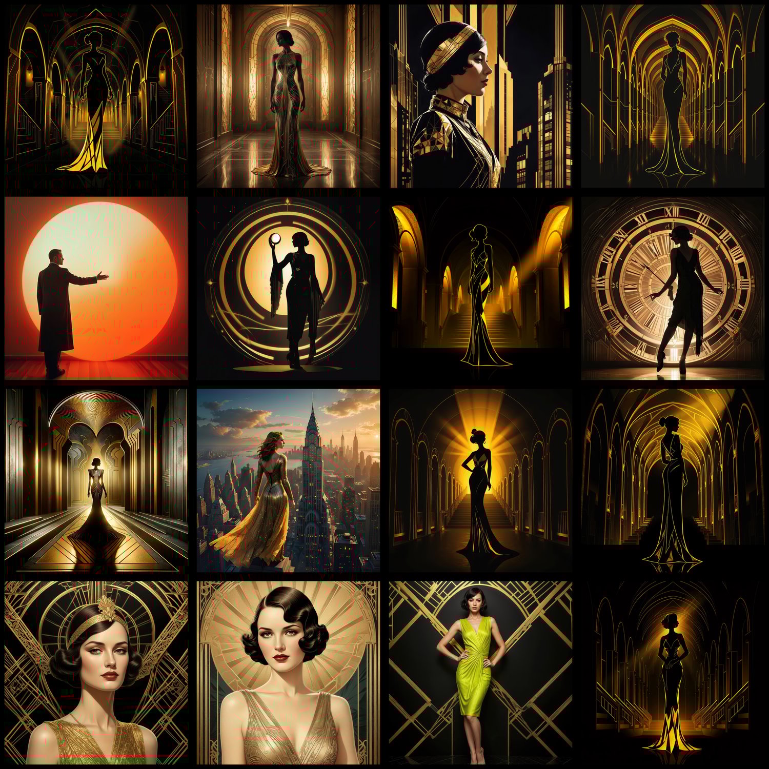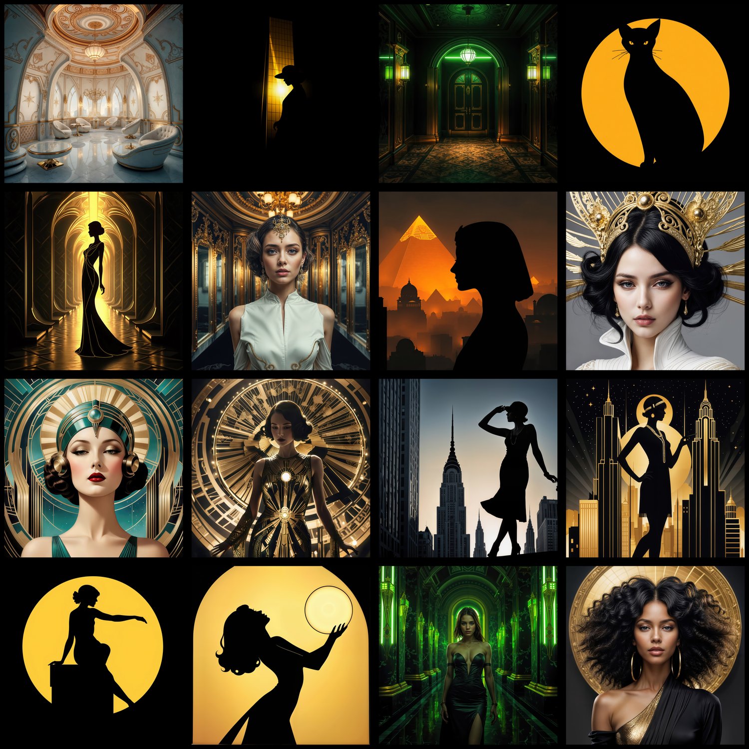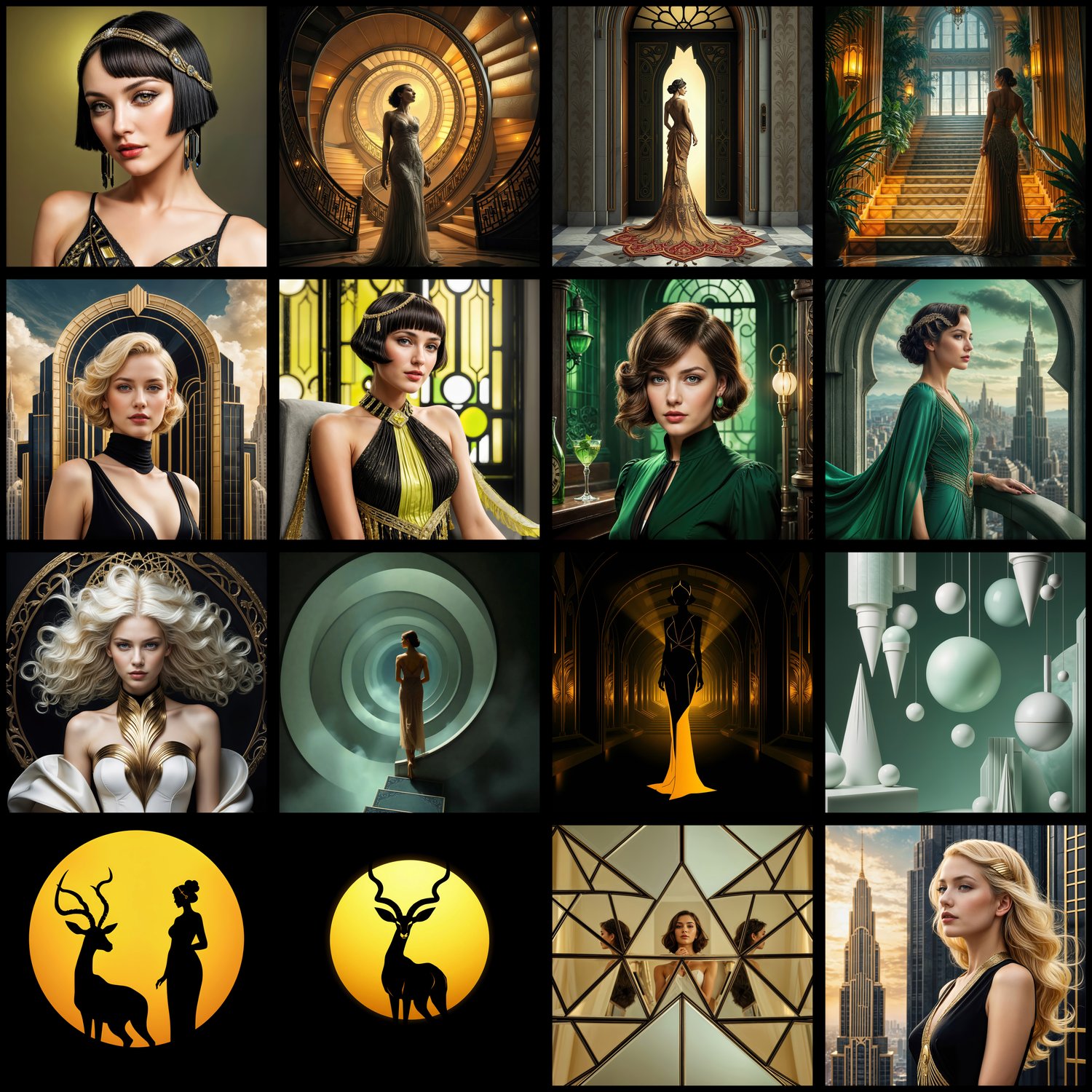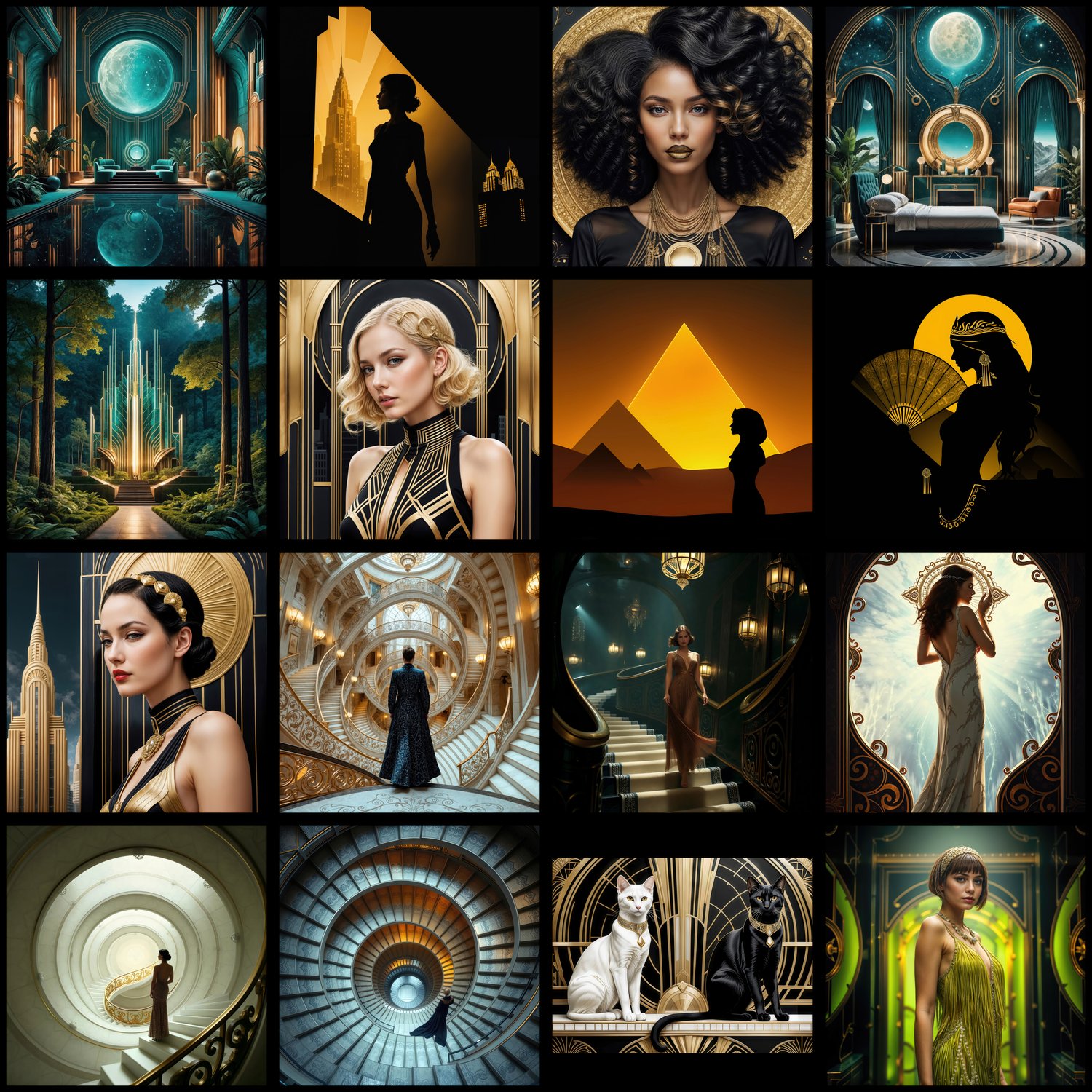Experience the geometric elegance and luxurious sophistication of the Art Deco movement! This bundle includes 119 high-resolution artworks (4000px, 300 DPI) perfect for album covers, book covers, YouTube thumbnails, social media graphics, and print projects.