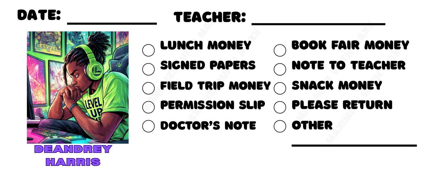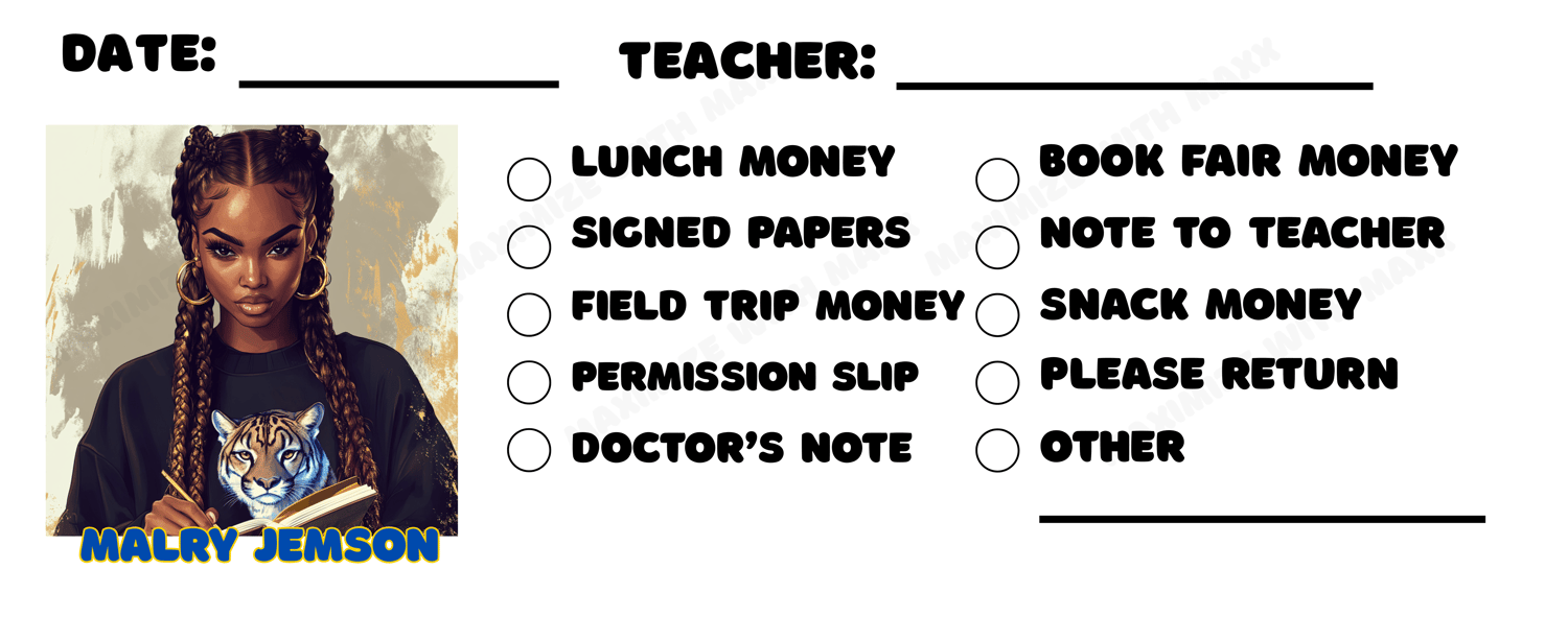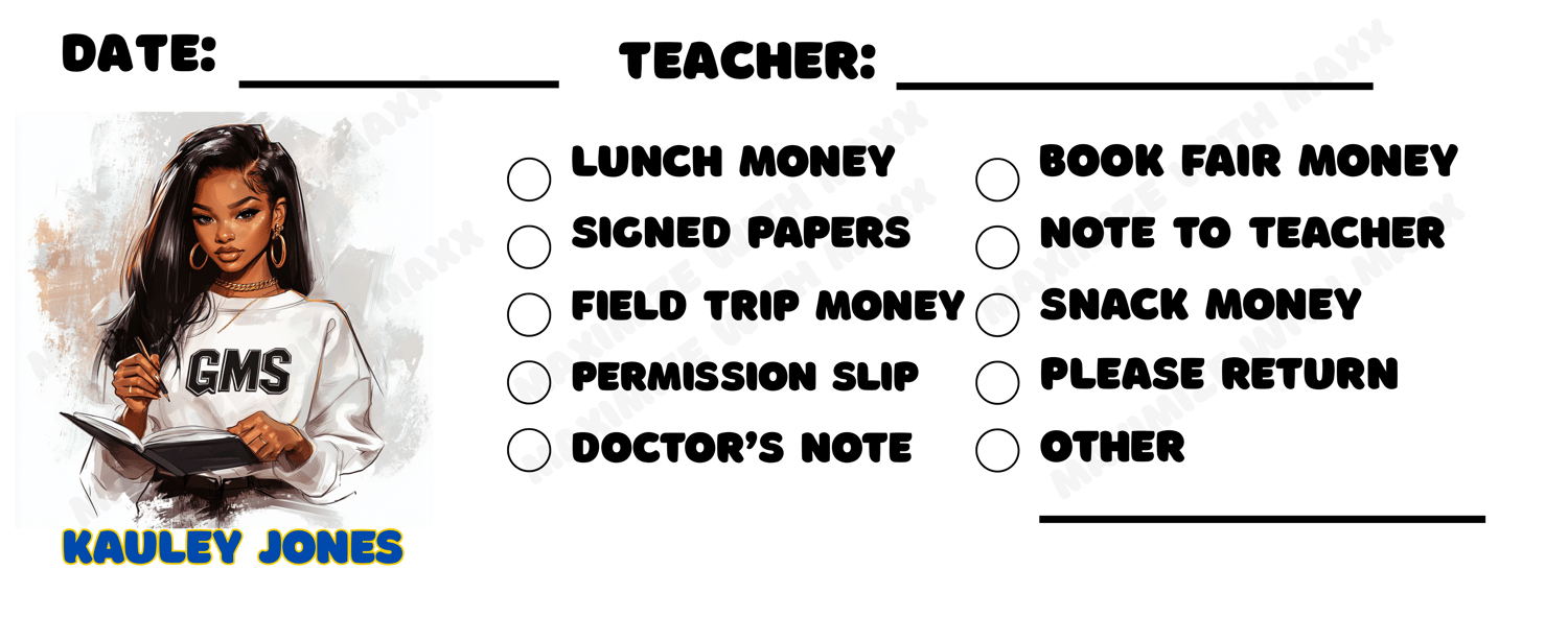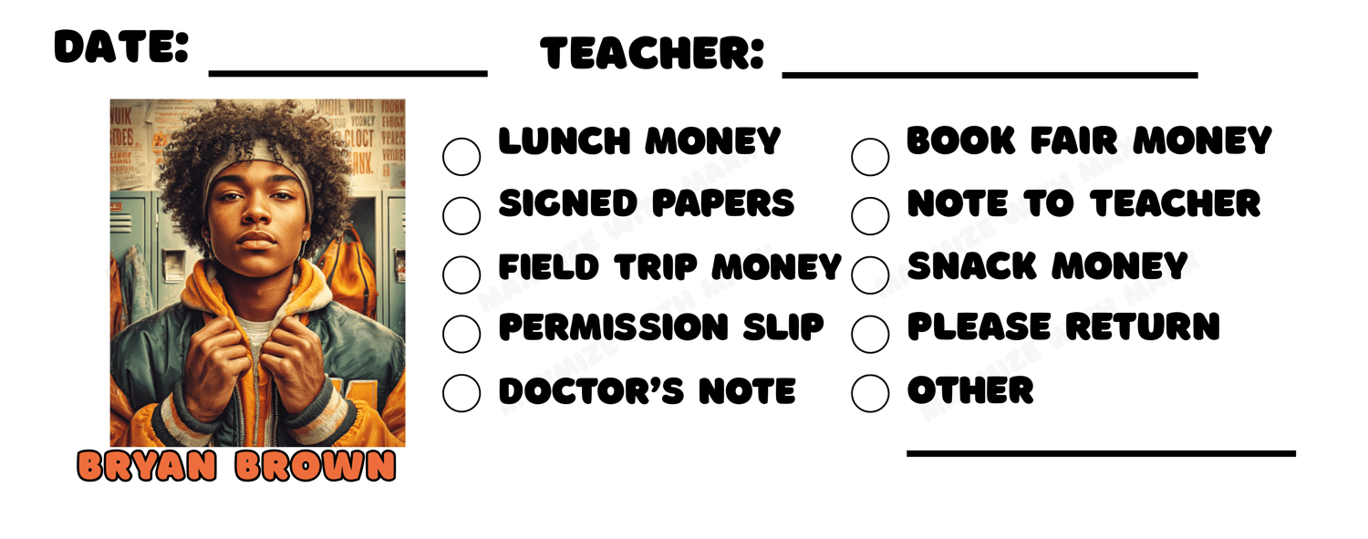 Custom Printable School Note Envelopes with Afrocentric Student Illustrations