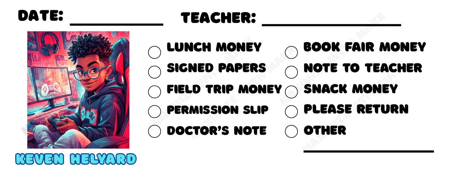 - Customize name, date, teacher, and optional image