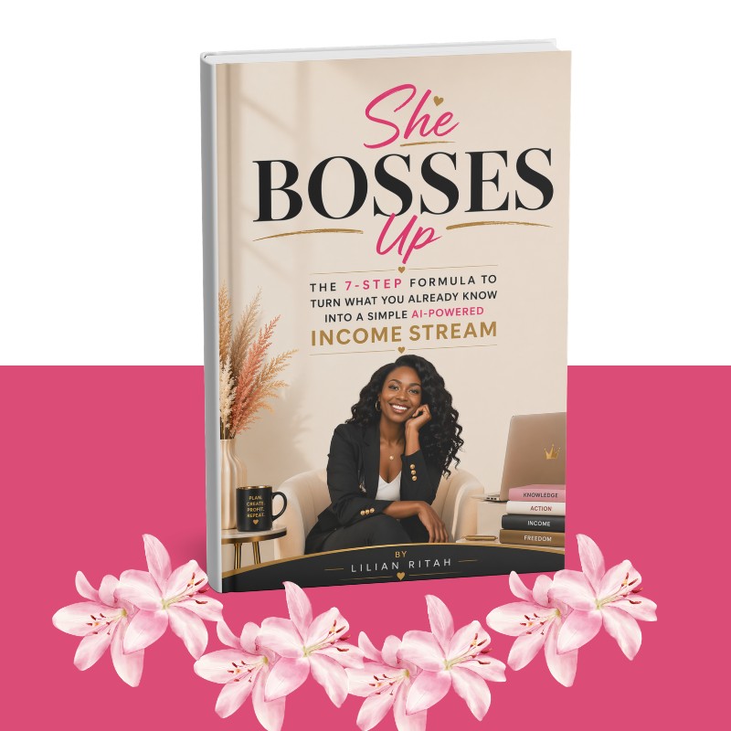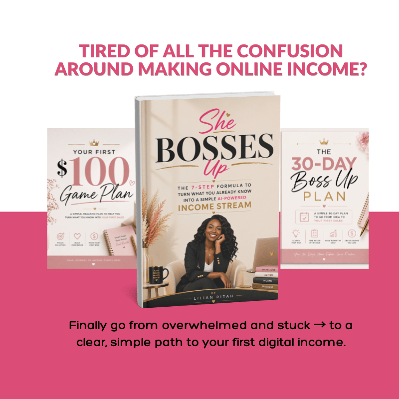 She Bosses Up is a beginner-friendly guide that shows you the exact steps — in the right order — to turn what you already know into a simple, AI-powered income stream.