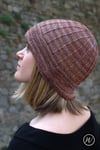 Perfectly geometric in shape and form, Corbelle offers new lines in Hat construction. Worked in hand painted sport weight yarn, this bucket style Hat is worked in one piece: the brim is worked first before proceeding to the main body of the Hat to ensure perfectly unison in the lines and forms created by twisted stitches.