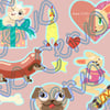 this сute digital stickers art dog PNG clipart for planner cricut includes 9 unique PNG stickers (5 large + 4 small) included in zip file, perfect for journaling, planners, digital scrapbooking, printing sheet or decorating your social media content!