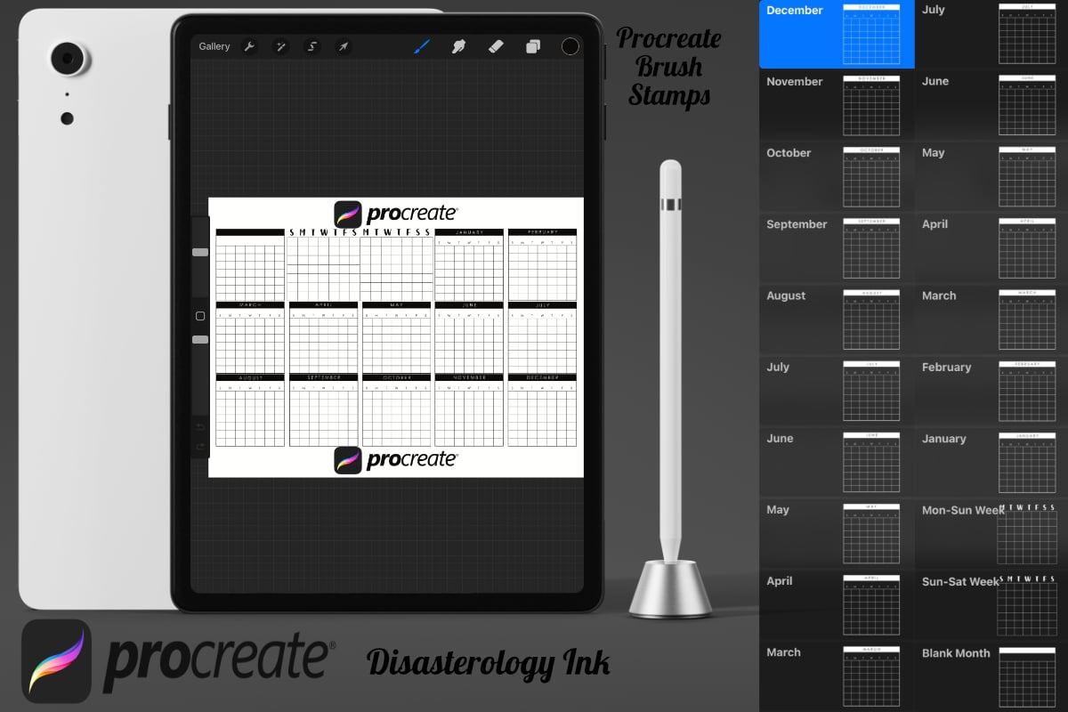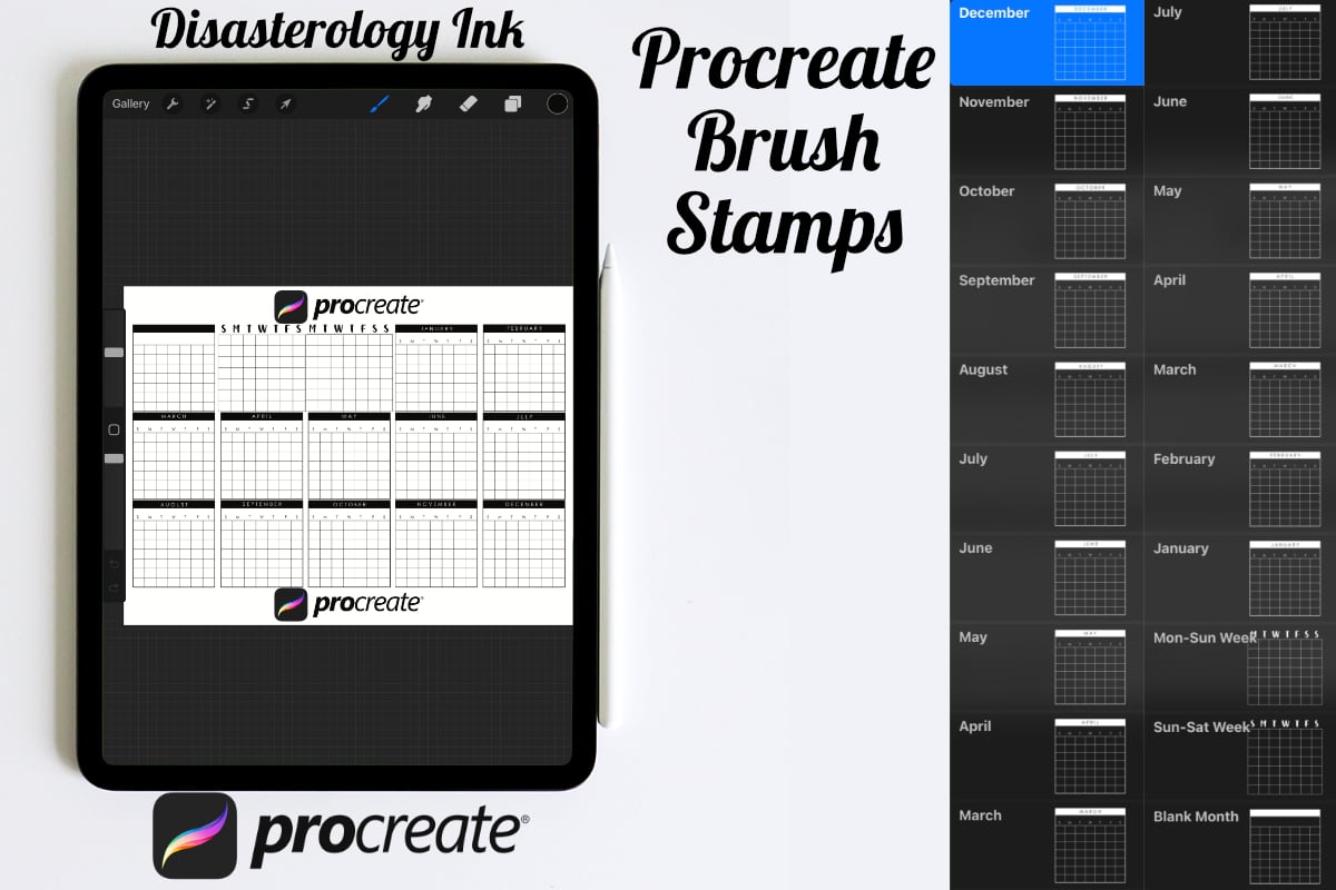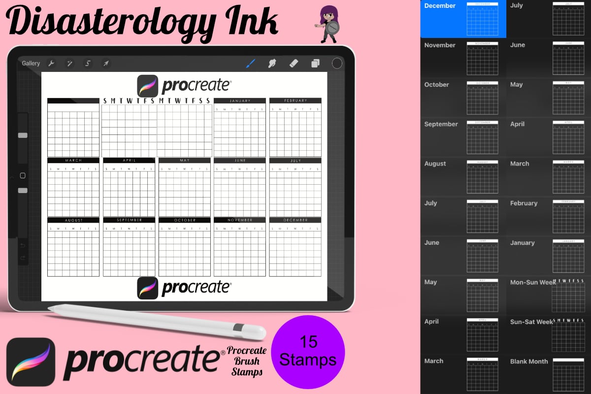 Procreate stamps save time when drawing, saving the effort of having to recreate the same thing for multiple designs and projects, save time on your design by purchasing these calendar brush stamps so you can utilise that time on creating more beautiful art.
