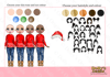 three different skin tones, three eye colours and 5 hair colours