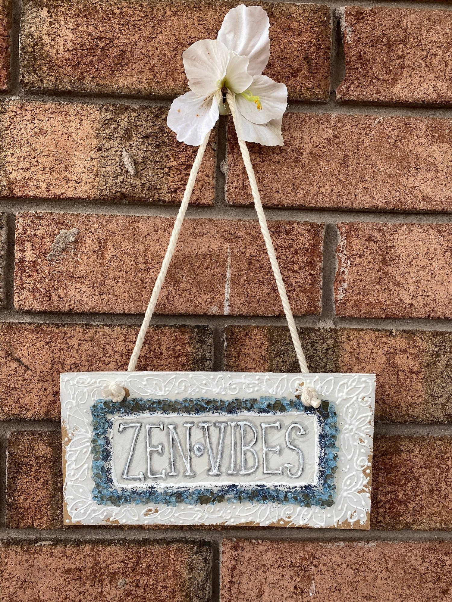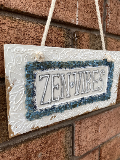 Blue Crystals Meditating ZEN VIBES Sign, Inspirational Wooden Sign Yoga Door Sign, Wall Decor, Hand Painted Sign, Meditation Friendship Gift