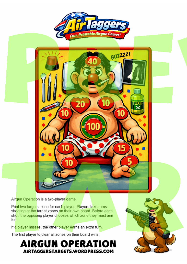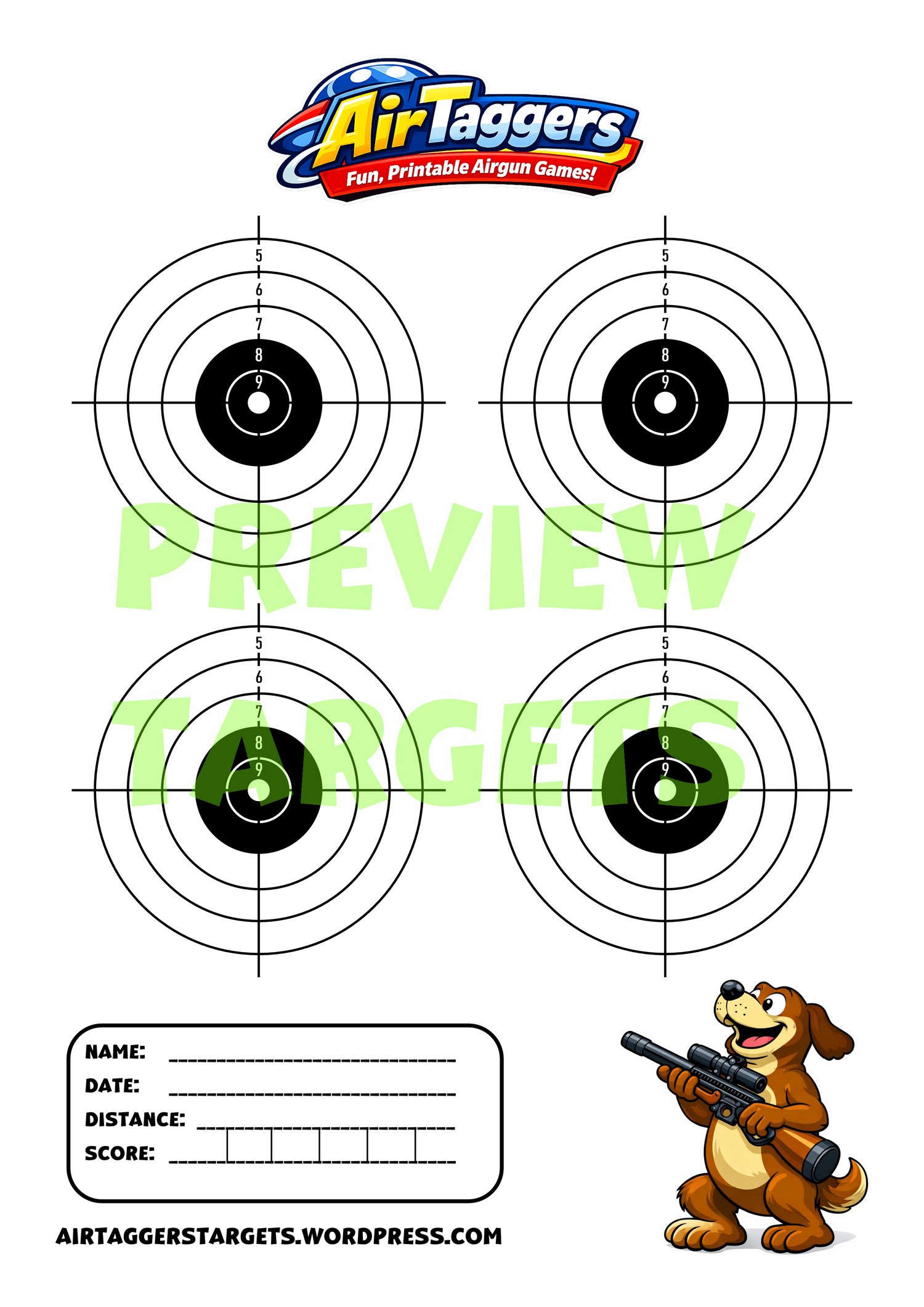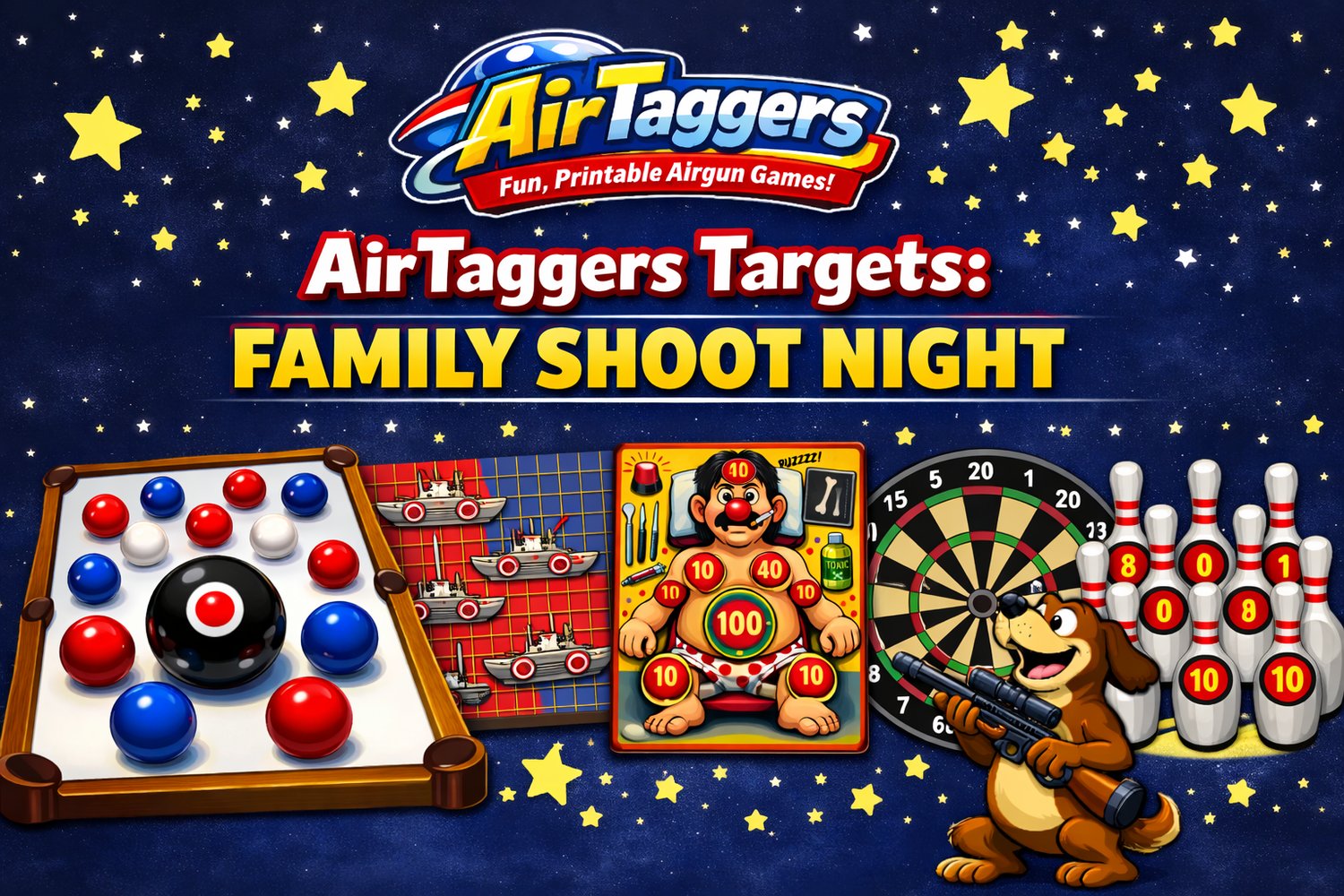 AirTaggers Targets Family Shoot Night is the ultimate printable airgun game pack designed to bring families together through friendly competition, skill‑building challenges, and hours of engaging fun. Every target is crafted for clarity, excitement, and replayability, making this the perfect addition to home ranges, back‑garden setups, youth groups, and shooting clubs.