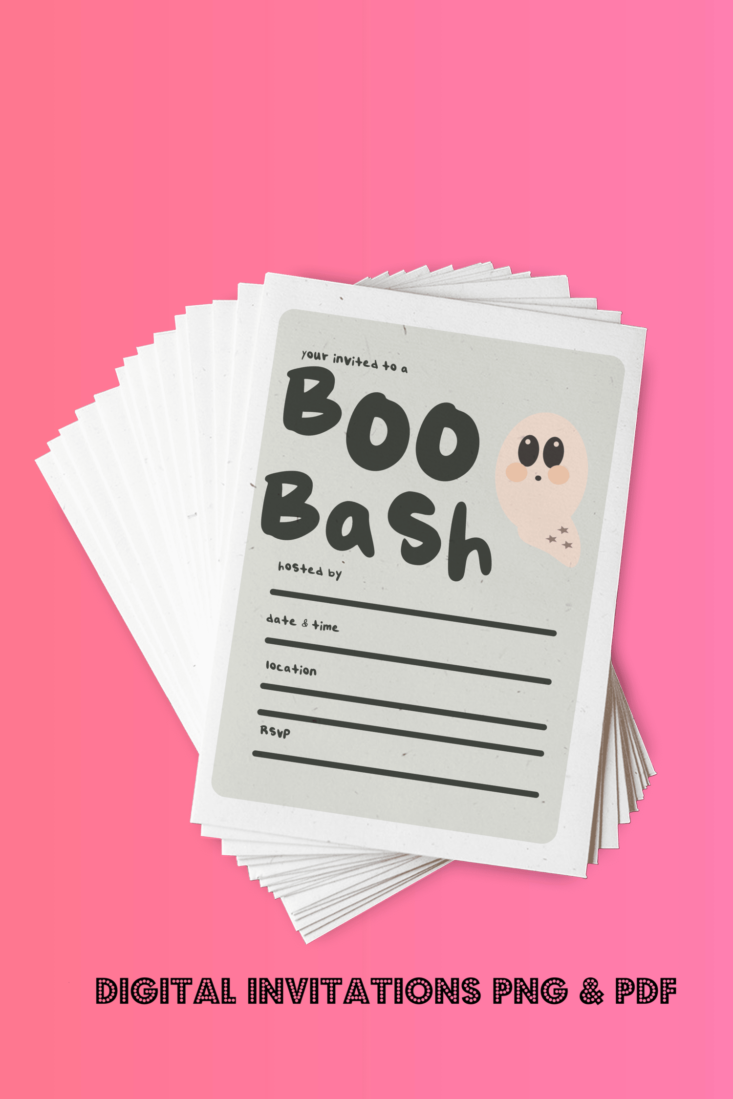 Get this adorable spooky ghost invitation for your halloween party, available in PDF & PNG Easy to print on your device. For Personal use only!