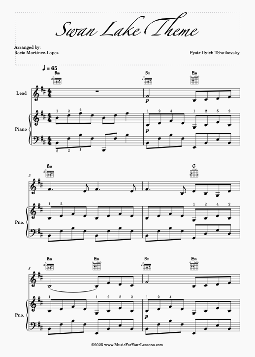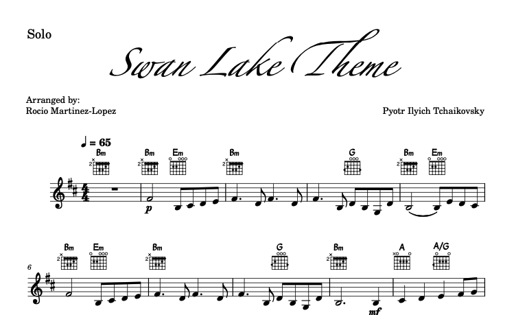Swan Lake in B Minor – New Arrangement for Solo, Guitar, and Piano (All 12 Keys)