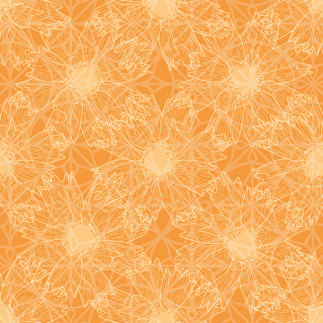 Calliopsis flower vector repeat pattern. Outlined floral seamless illustration background.
