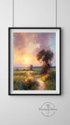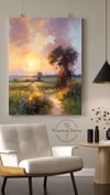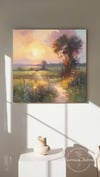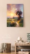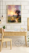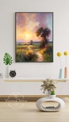 Landscape Painting in Semi Impasto Oil Painting Style of a Sunset Scene in Thick Paint Strokes, Colorful Painterly Interior Accent Decor