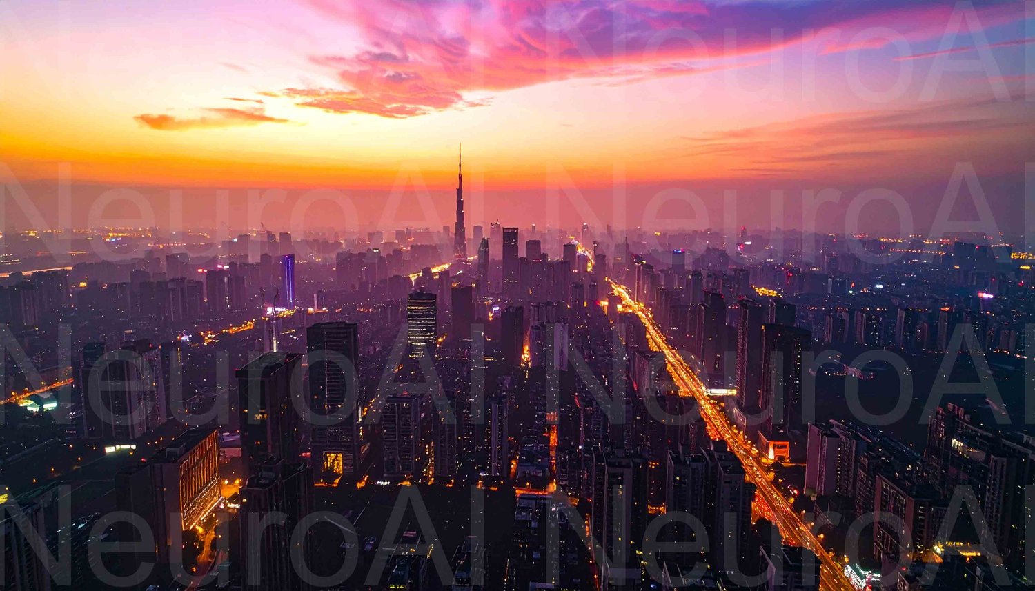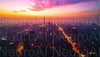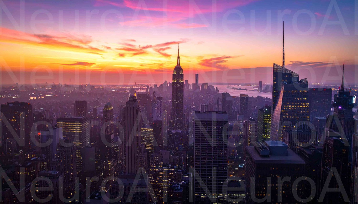 Stunning sunset over vibrant New York City skyline