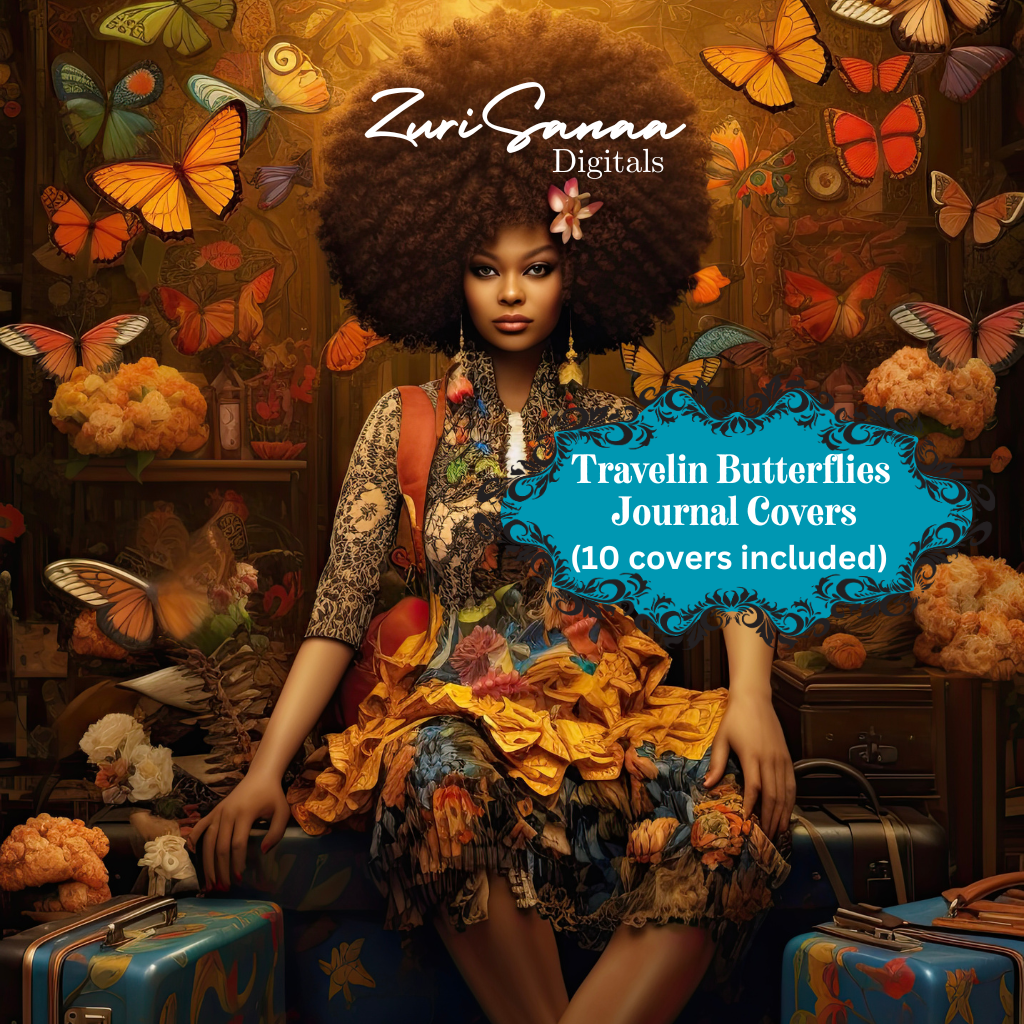"Wings of Adventure: Black Woman Traveling and Butterflies - 10 Journal Covers" Digital Download