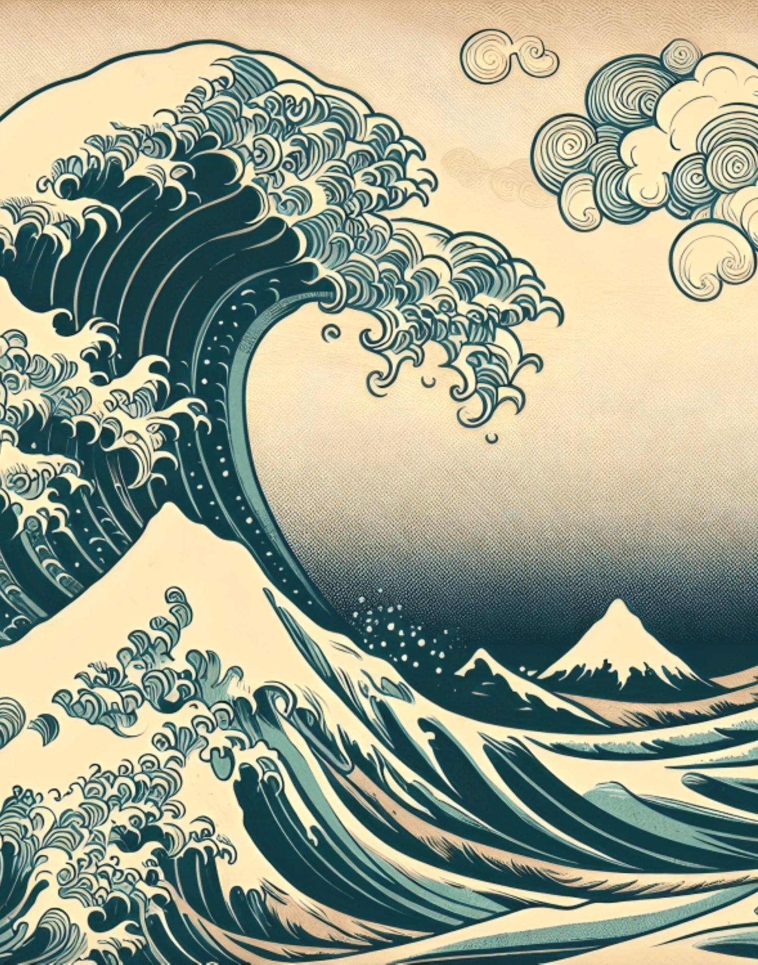 Sea Current, Seascape, Japanese Current Painting, Meritime Life, Blue Sea Painting.