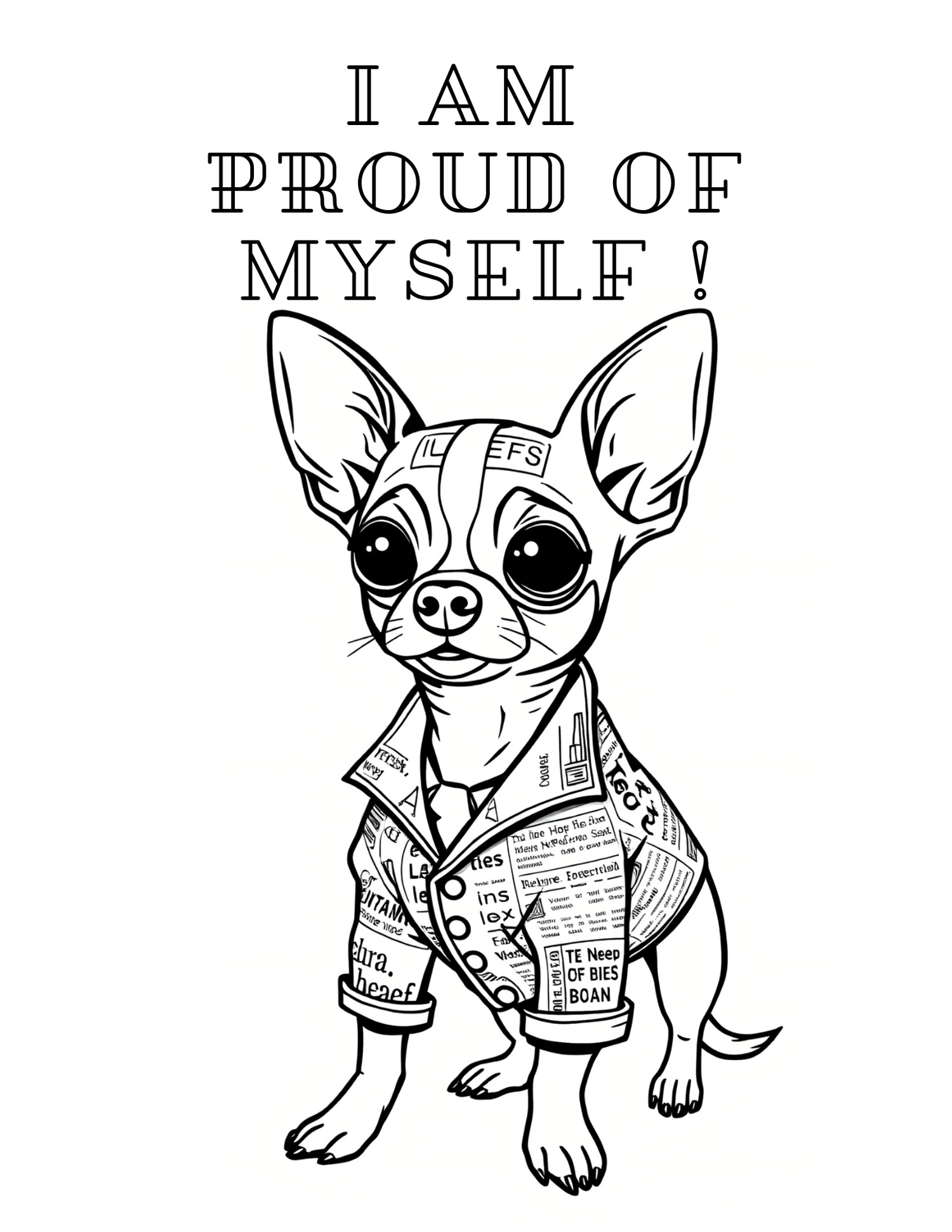 30 Printable Daily Affirmation Coloring Pages with Adorable CHIHUAHUA Cartoon Images to Color