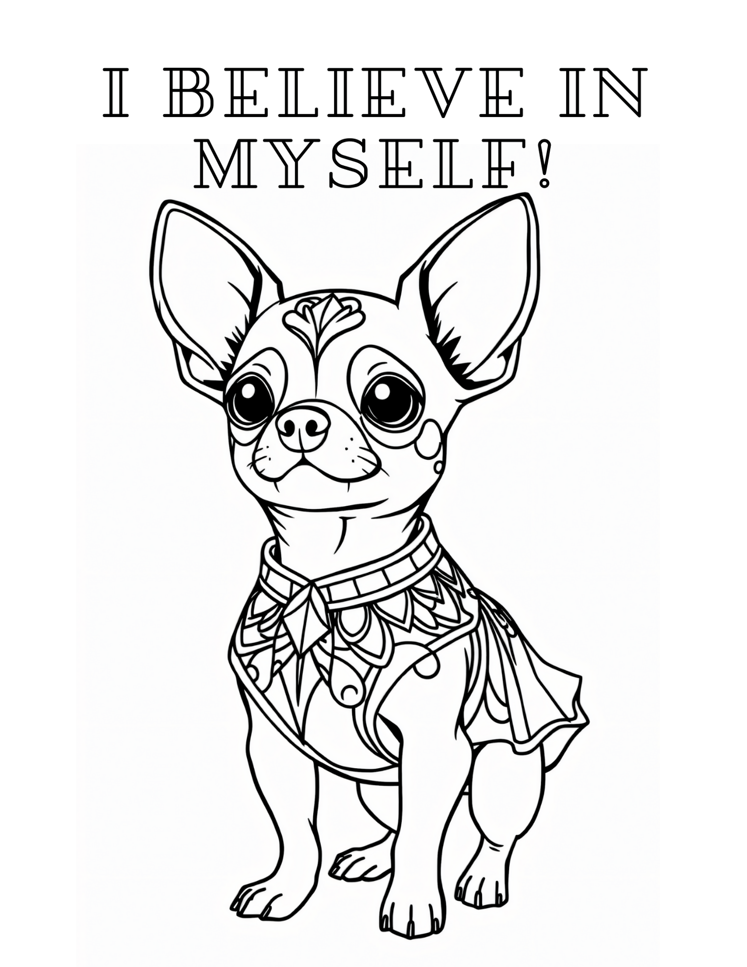 CHIHUAHUA CARTOON COLORING PAGES With Positive Affirmations