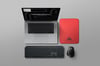 Photorealistic laptop mockup pack featuring 4 isolated objects in a flat-lay scene: a MacBook Pro 16, a versatile mouse pad, a Logitech MX Keys keyboard, and a Logitech MX Master 3 mouse, with editable Smart Objects and independent lights & shadows — 7000 × 5000 px at 300 DPI.