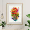 The Vibrant Color variation of the Digital Watercolor Floral Painting is perfect for those who want to add a pop of color to their living space. The bright and bold colors of the flowers will bring a sense of energy and vitality to any room. This variation is perfect for a modern or contemporary interior, adding a touch of sophistication and elegance.