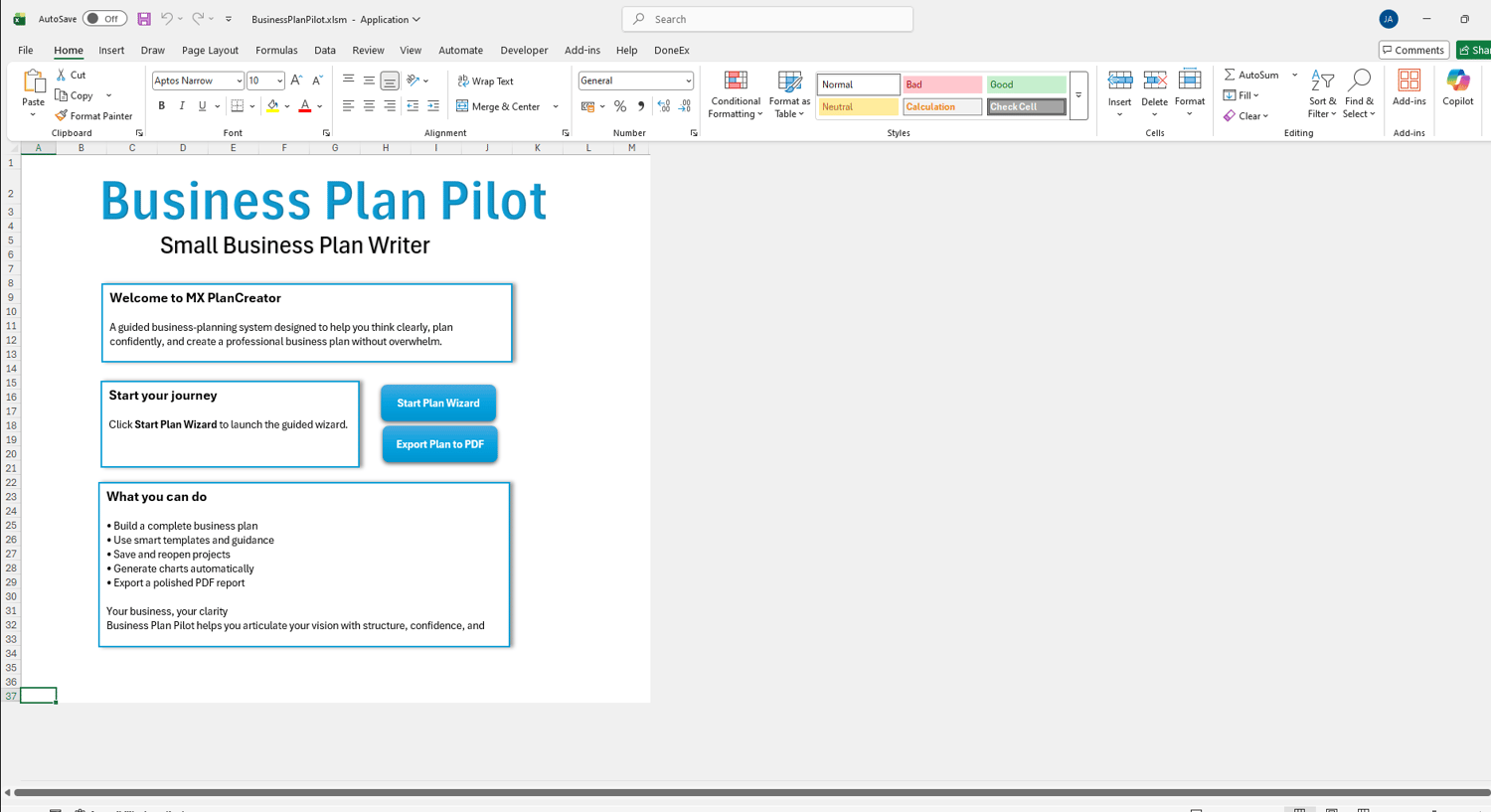 A guided business‑planning system designed to help you think clearly, plan confidently, and create a professional business plan without overwhelm.