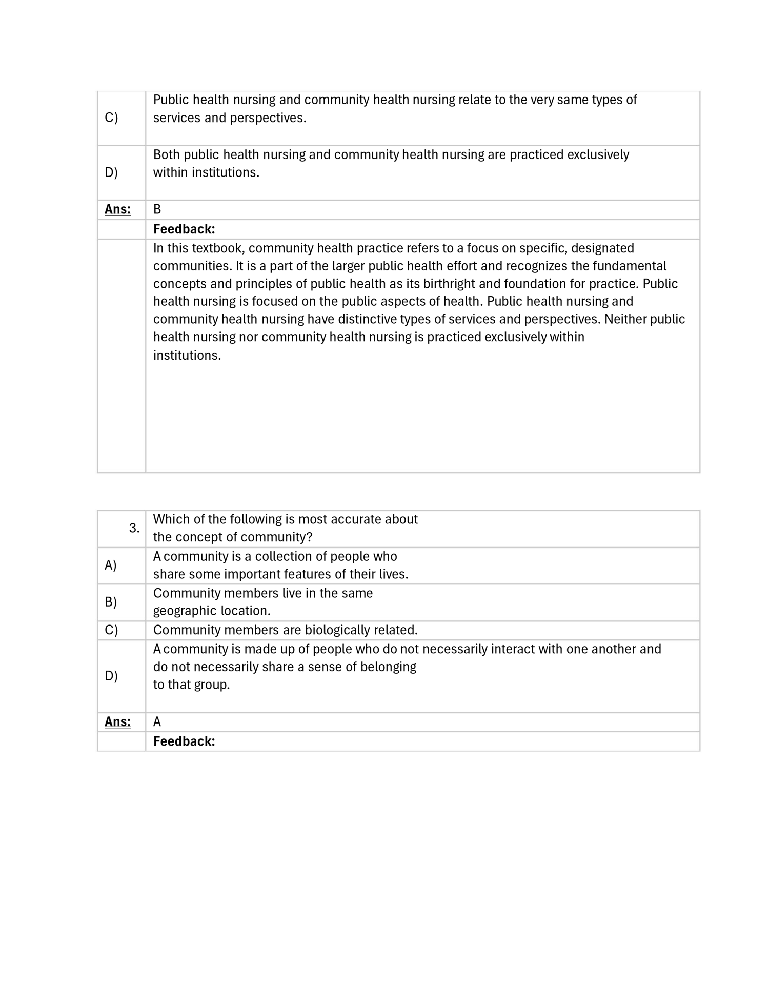 This trusted test bank provides a full set of exam-style questions and verified solutions, fully aligned with the 10th Edition of Community and Public Health Nursing. It is the ultimate resource for mastering public health, community care, and population-focused nursing.