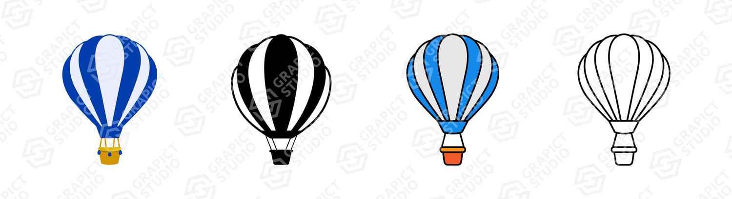 Air balloon icon set of 4, design element suitable for websites, print design or app. Creative vector illustration, flat glyph style icon.