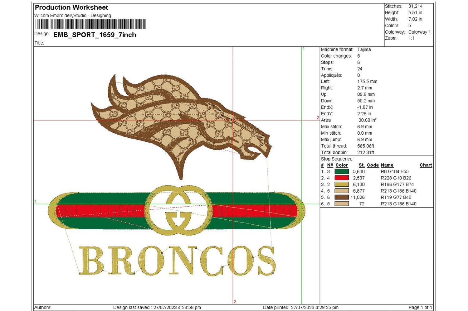 Guc.ci Denver Broncos Logo Embroidery Design Files, NFL Broncos, NFL Logo Embroidery Files, NFL Denver Broncos Machine Embroidery Design, Digital Downlo