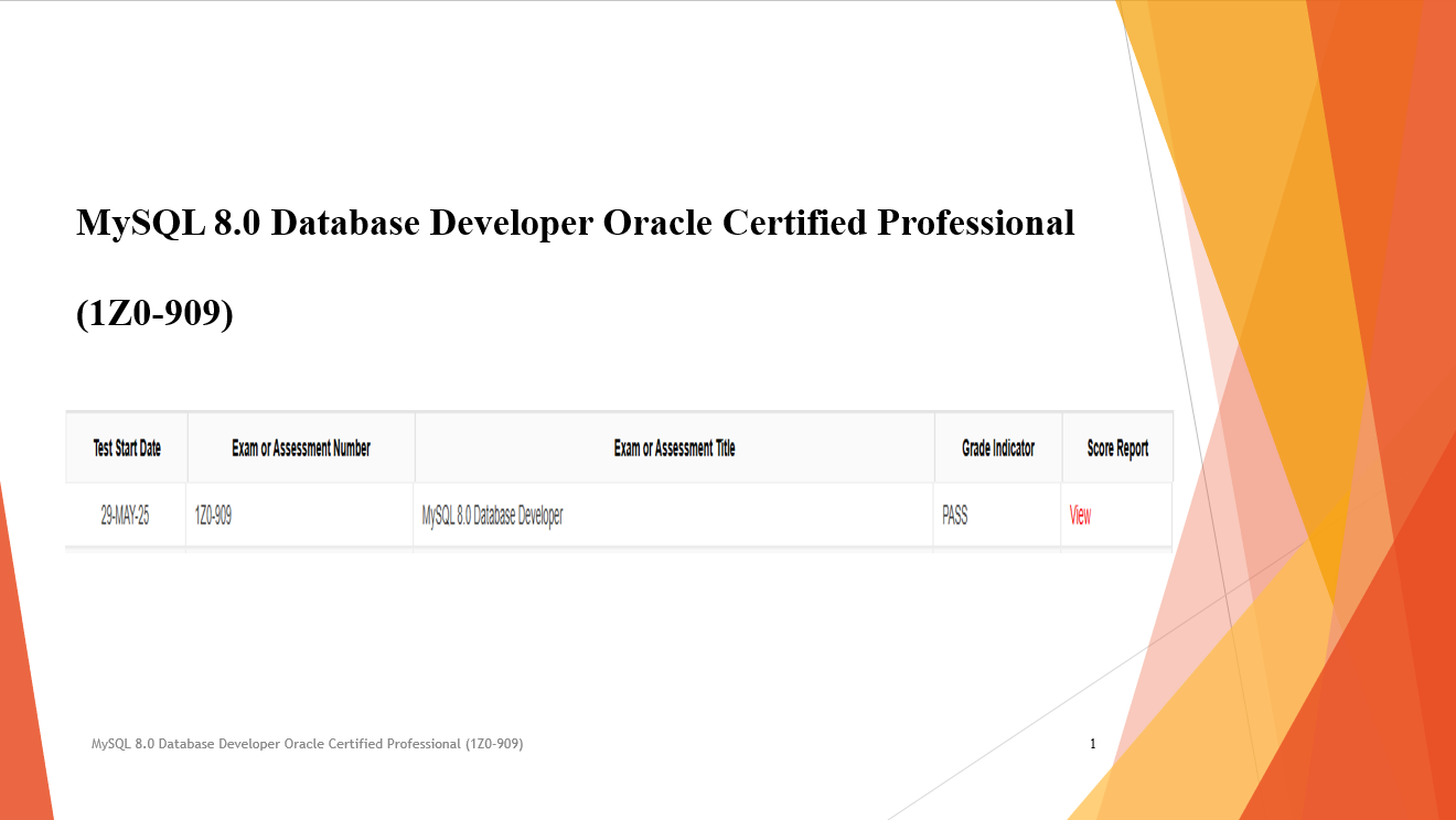 Exam Dump - MySQL 8.0 Database Developer Oracle Certified Professional (1Z0-909) Updated October 23, 2025