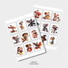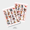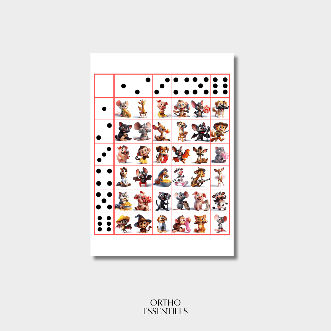 - 36 cartes illustrées mettant en scène des personnages dans des contextes amusants (ex. : le chat porte des chaussettes rouge, la biche a une moustache)
